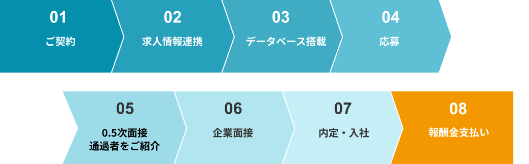 採用されるまで企業様側は費用がかからない成果報酬型。紹介契約締結だけで利用開始可能!